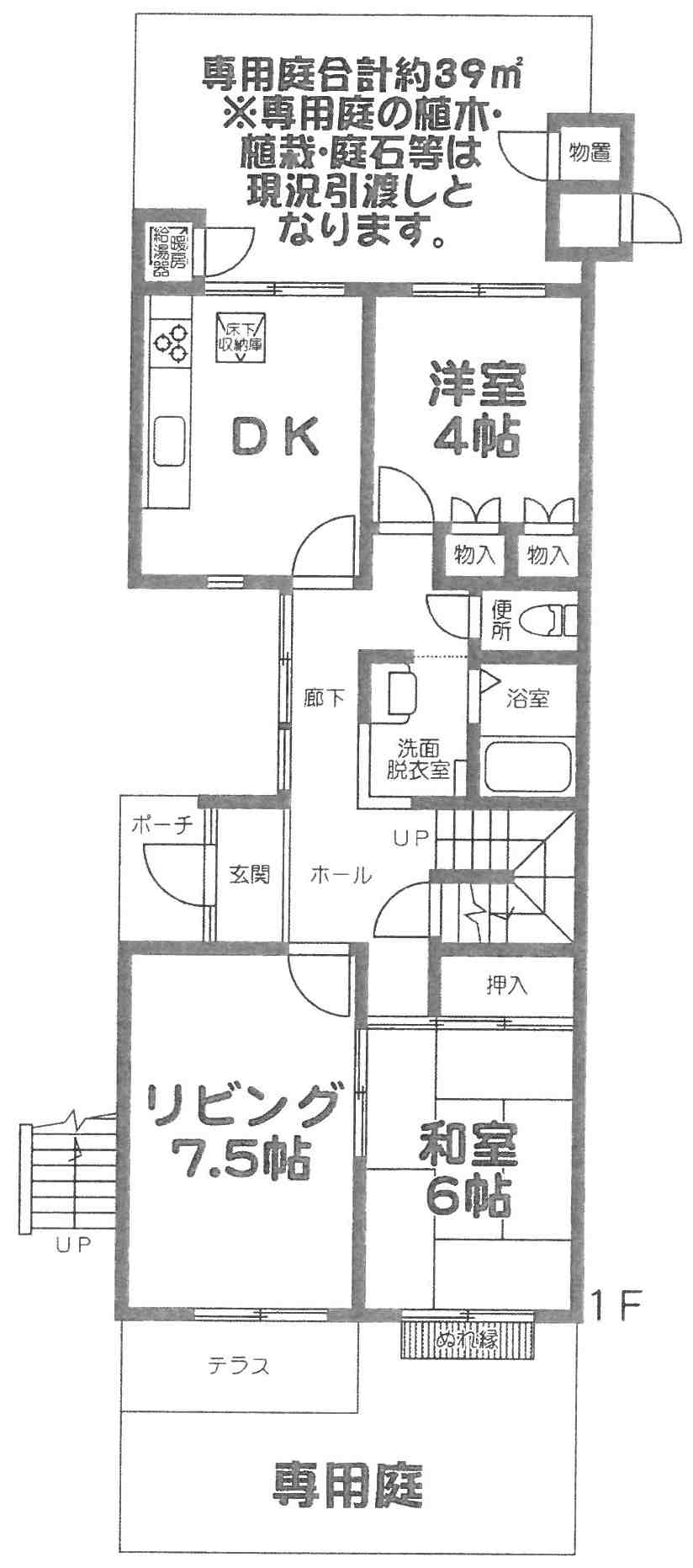 京王高尾線「めじろ台」駅バス14分、JR横浜線「八王子みなみ野」駅バス16分の2路線2駅利用可・バス停より徒歩2分 閑静な住宅地・東南角部屋に付き日当たり良好・約40uの専用庭有・メゾネットタイプ |